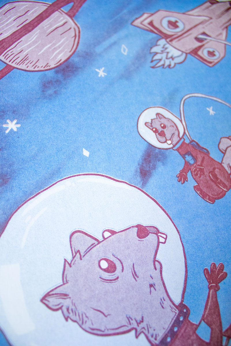 11" x 17" 2 color Risograph print on white 60# Bristol paper. Signed and numbered edition of 50.